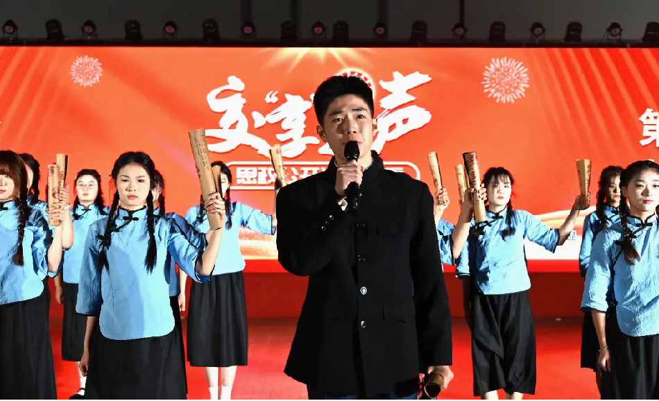 正式开课前,现场播放了学院思政实践研修成果、2024年安徽省大学生学习马克思主义理论成果大赛作品《一“路”风华》,该作品获全省高校视频类一等奖第一名。思政公开课由青年学生与老师对话展开,从1840年前后孱弱的中国开始,回顾到1900年的中国,让师生们感受到了信仰缺失的中国无法主宰自己命运的现实。情景诗朗诵《少年中国说》点燃了全场的氛围,师生们的爱国之情瞬间迸发,众多师生潸然泪下。