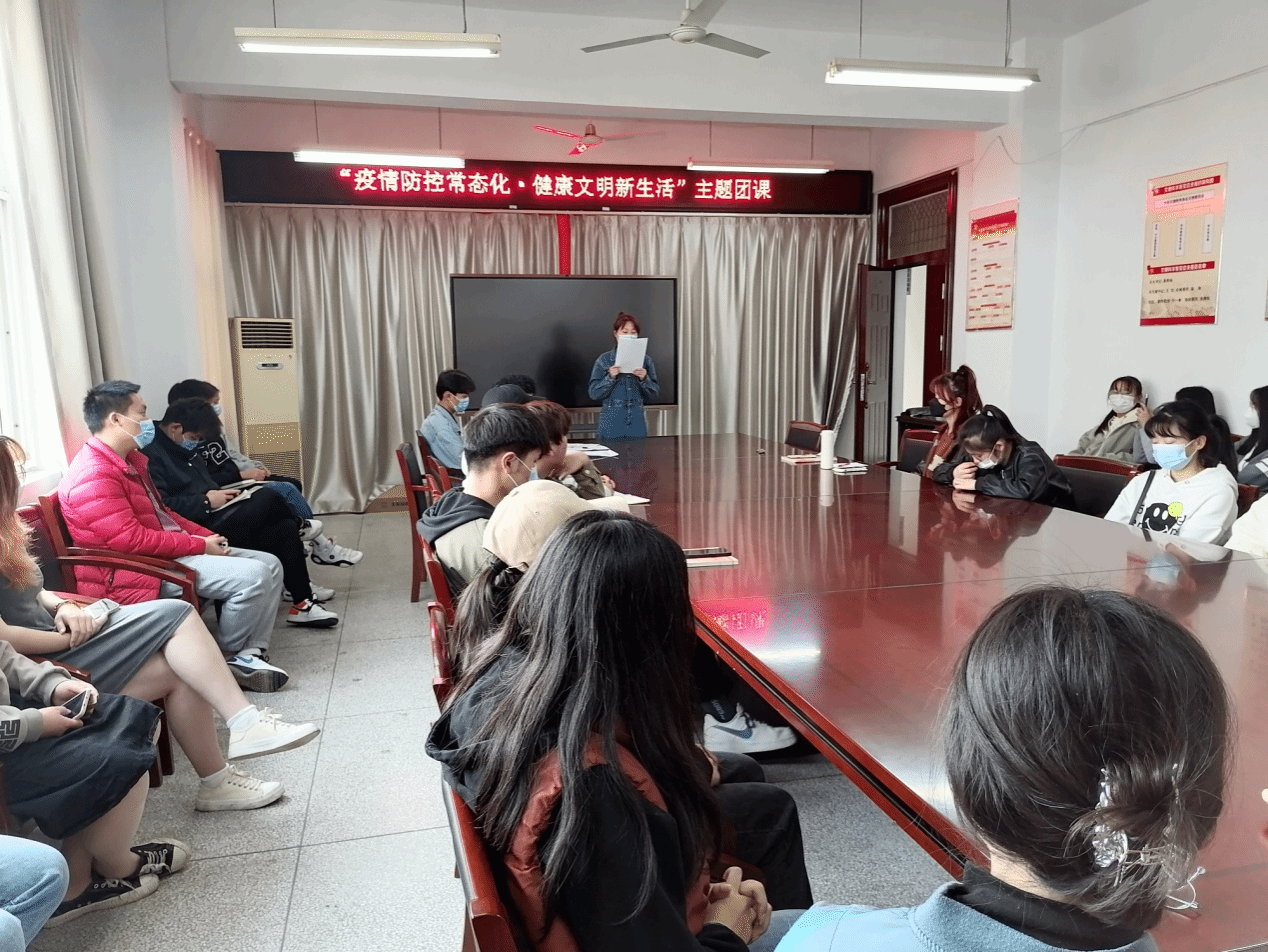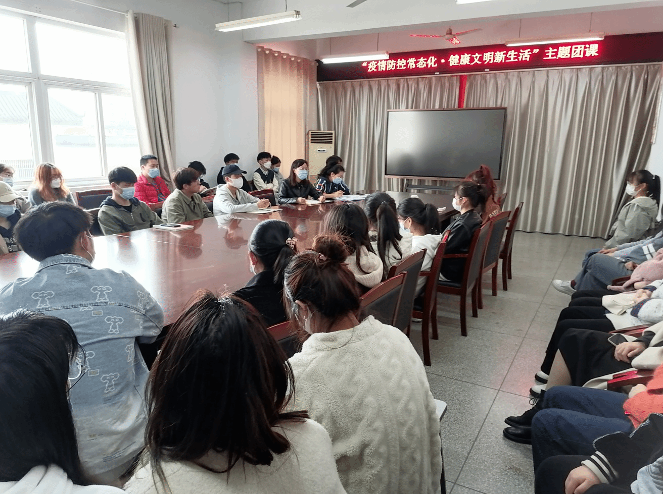为落实学院疫情防控工作的部署和要求,进一步加强校园封闭管理期间文理系青年学生的思想政治教育力度,提高同学们的疫情防控意识,强化团员青年的模范带头意识,系团总支于4月1日下午在系党员活动室组织开展以“疫情防控常态化 健康文明新生活”为主题的疫情防控主题团课。由系党总支副书记、副主任王珏主讲,系团总支书记华其娟主持,全体同学参加此次团课。