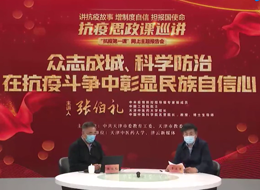 5月12日上午,天津市大中小学“抗疫第一课”专题报告会在天津市津云中央厨房正式拉开帷幕。报告会由中共天津市委教育工委、天津市教委主办,特邀中央疫情防控指导组专家组成员、中国工程院院士、天津中医药大学党委副书记、校长张伯礼教授主讲,天津市委教育工作分管领导、天津市教育两委全体领导班子成员,以及全市160余万大中小学生通过网络收看了报告会直播。