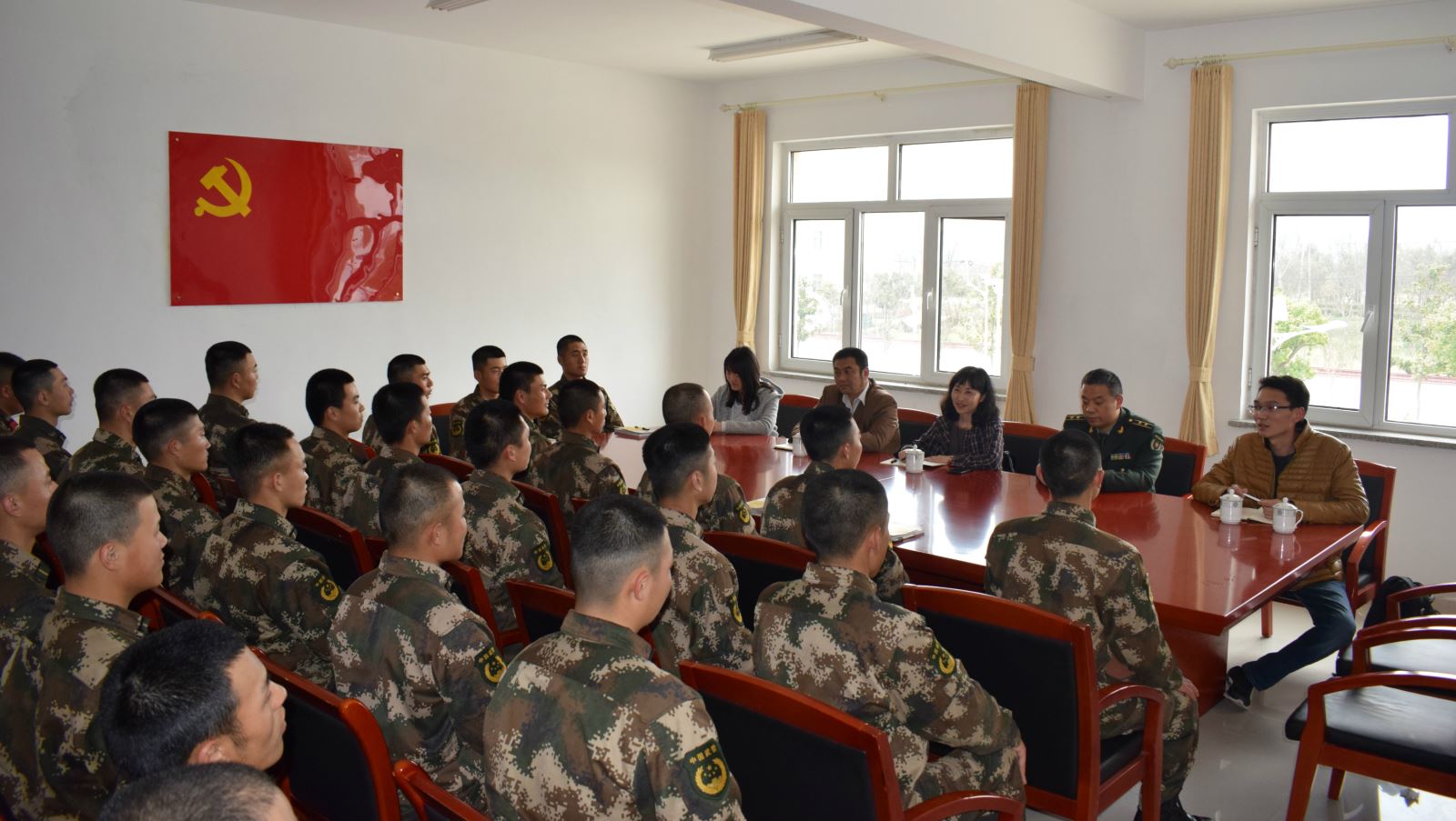 基地江队长介绍了米兰15级定向培养士官生在部队的生活、学习、封闭训练情况,认为他们专业知识较扎实、文化理论水平较高、国防知识较为全面、理解能力和领悟能力较强,对他们的综合素质给予肯定。希望他们能进一步加强锻炼,不断提升个人素质,从而不愧为“文明之师,威武之师”。