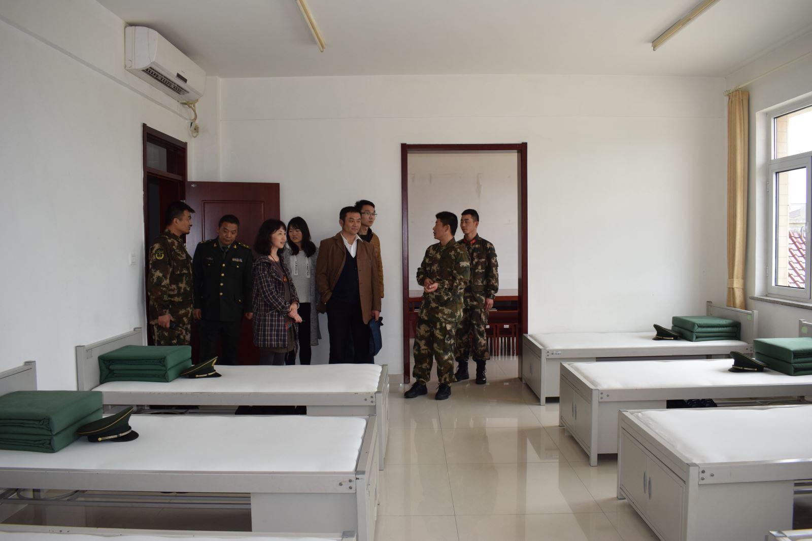 随后,大家实地参观了定向培养士官生的内务情况、观看了士官生们表演的精彩合唱,短短两个月时间,同学们在内务管理、作风纪律和体能方面取得的进步让老师们深感欣慰。