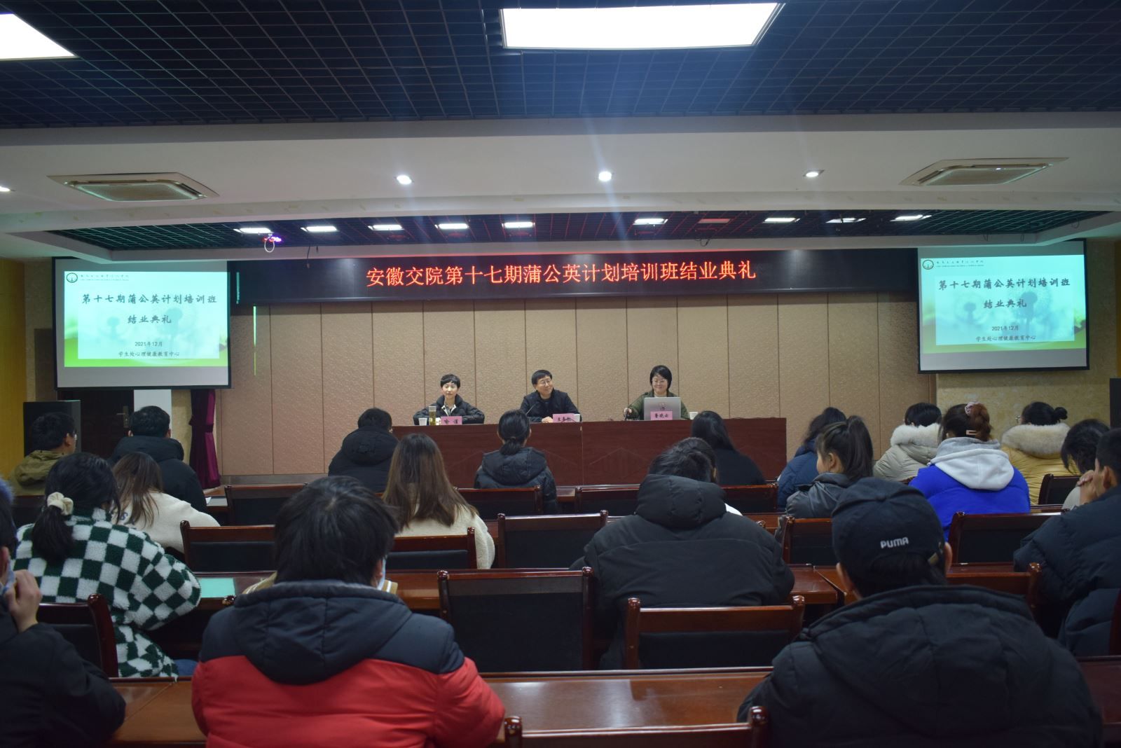 2021年12月31日,第十七期蒲公英计划培训班结业典礼在北区学生活动中心举行。学院副院长王丰胜、学生处处长喻谨、院系专兼职心理老师、2021级心理委员及心理协会成员参加了结业典礼。