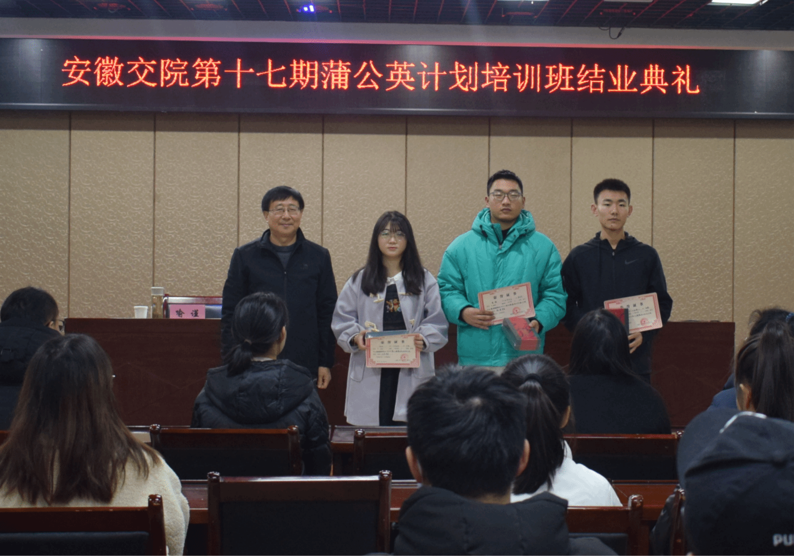 喻谨宣读了优秀学员名单,与会领导和老师为受表彰的学员颁发奖状和奖品。