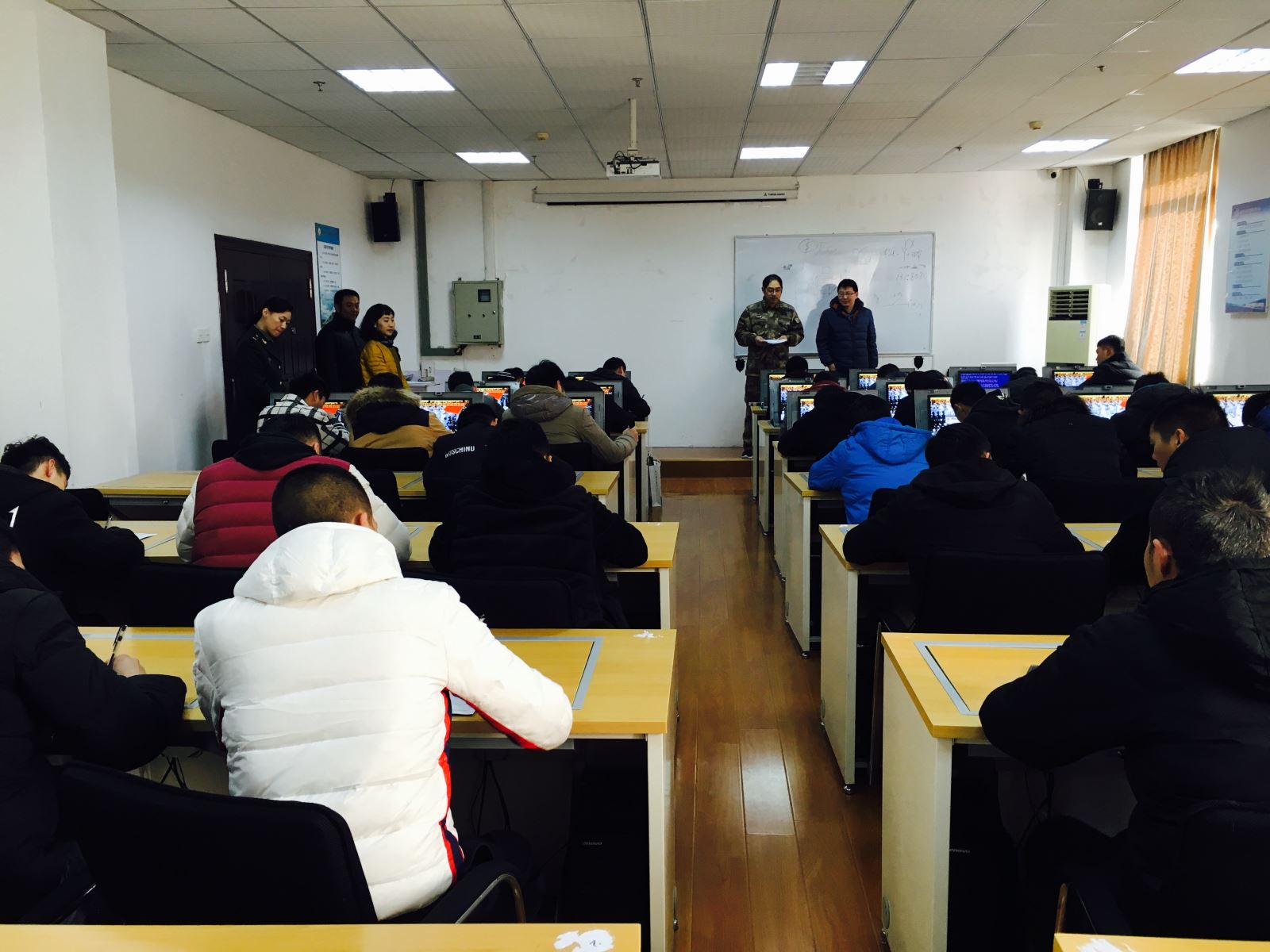 12月12日上午,全体士官班学生在信息楼进行了士兵职业基本适应性检测(心理测试),区武装部政工科科长于忠凯、学院学生处处长喻谨、副处长徐刚到达测试现场指导工作。