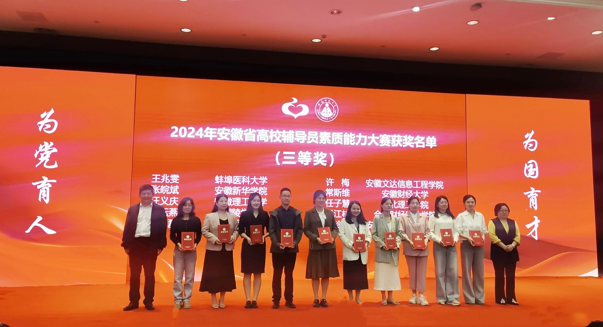 2024年5月9日-11日,由中共安徽省委教育工委、安徽省教育厅主办,教育部高校思想政治工作队伍培训研修中心(安徽师范大学)承办的2024年安徽省高校辅导员素质能力大赛顺利举行。经过激烈角逐,米兰城市轨道交通与信息工程系辅导员付玥老师荣获大赛三等奖。