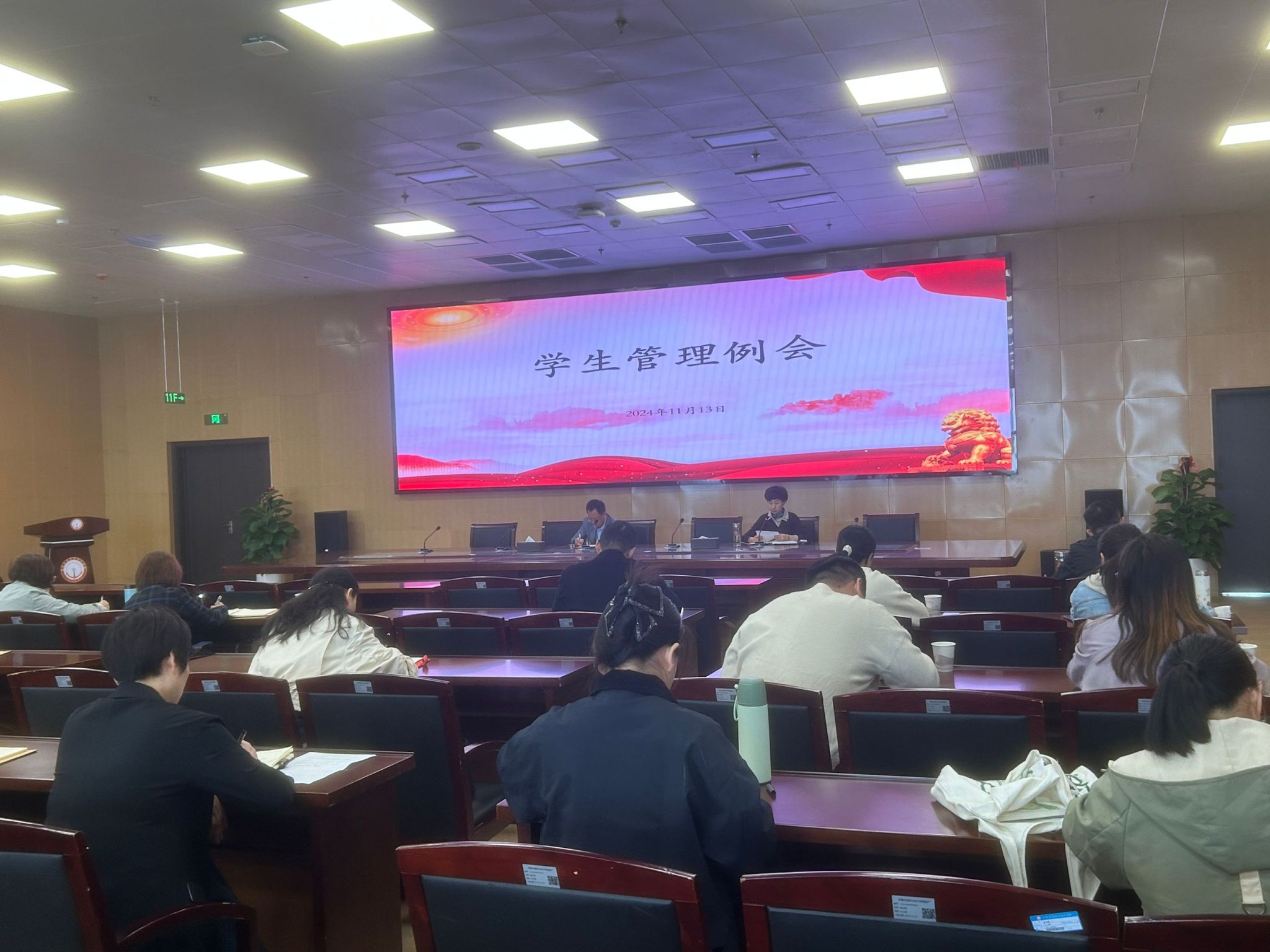 11月13日上午,学生处在综合楼11楼会议室召开学生管理工作例会。院党委书记杨菲铃出席会议并讲话,院党委委员、学生处处长喻谨主持会议。各系书记、主任辅导员参加会议。