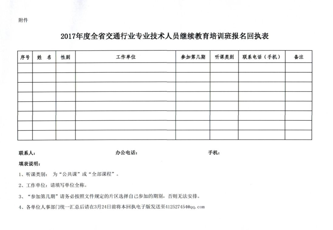 关于举办2017年度交通运输行业专业技术人员继续教育培训班的通知