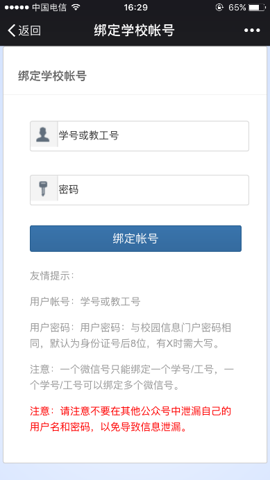 关注本微信号,进行身份验证时,用户名为工号,初始密码为身份证后8位,尾号有x的请大写。