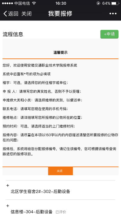 学院微信报修系统已经建立,现进入试运行阶段。进行报修前可关注本微信服务号并进行身份绑定。学院官微二维码: