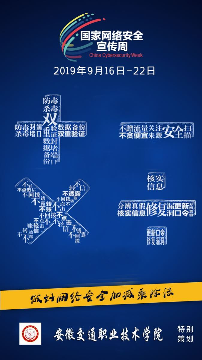 为增强校园网络安全意识,提高网络安全防护技能,按照中共安徽省委教育工作委员会关于《开展 2019年网络安全宣传周活动的通知》特制定出米兰校园网络安全宣传周活动方案:
