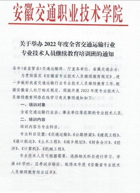 关于举办2022年度全省交通运输行业专业技术人员继续教育培训班的通知