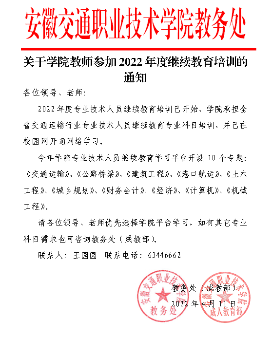 关于学院教师参加2022年度继续教育培训的通知