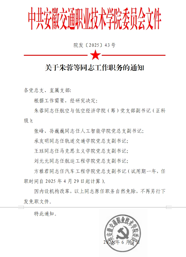 米兰milan官方网站关于梁洪波等同志职务任免的通知