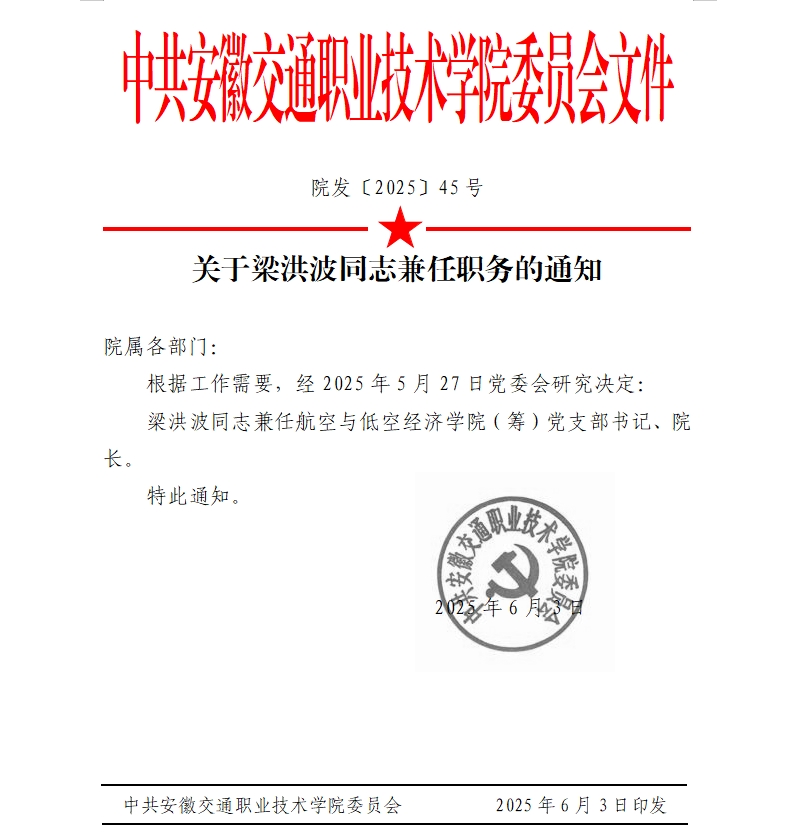 关于梁洪波同志兼任职务的通知