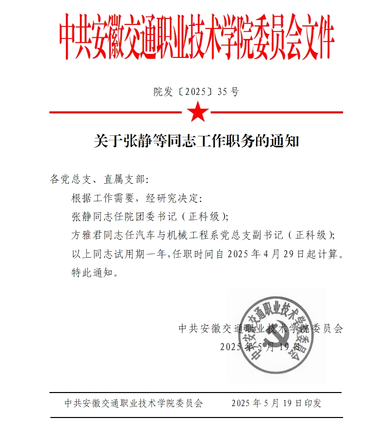 关于张静等同志工作职务的通知