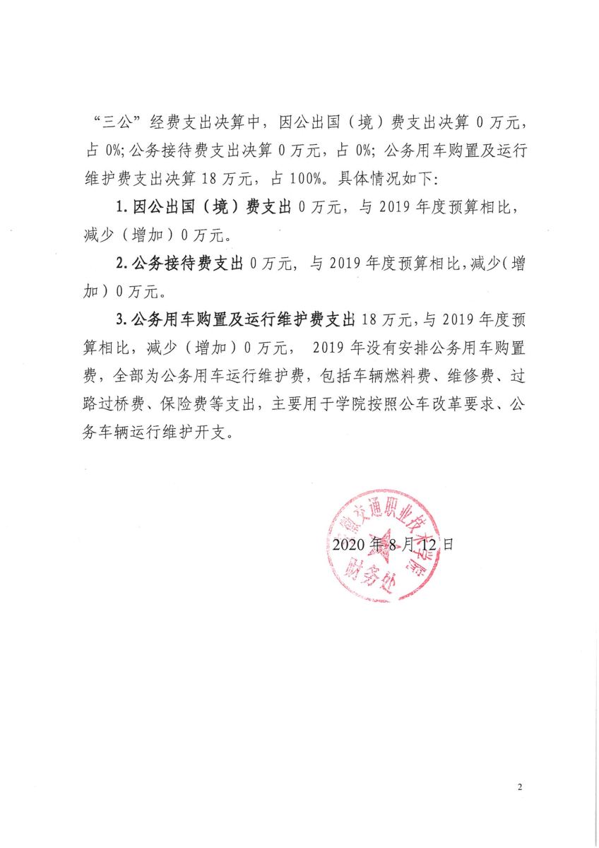 2019年度安徽省交通干部学校三公经费决算公开