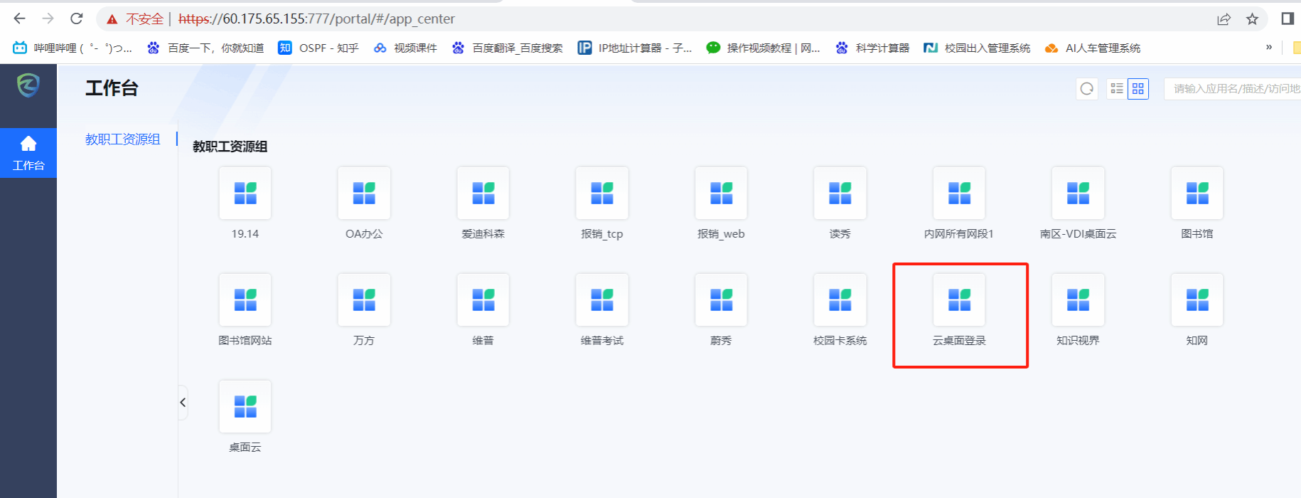 6、第四步:例如我需要访问云桌面,点击下图将会自动跳转。