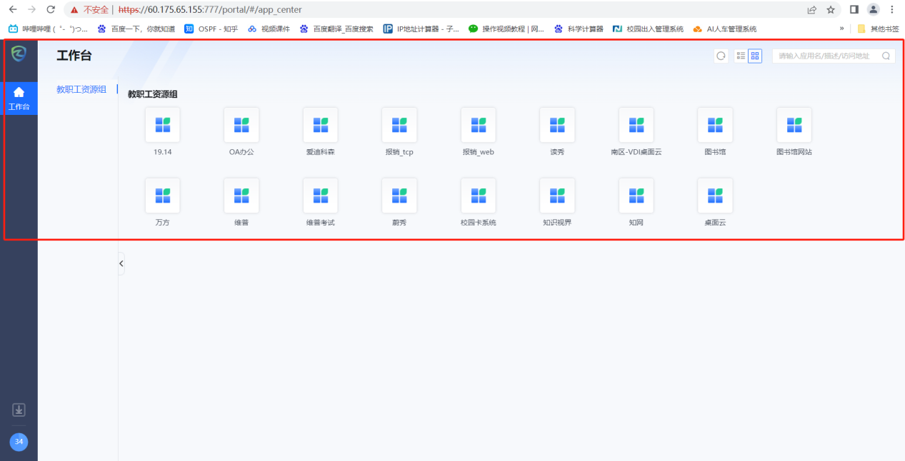 5、第三步点击确定后进入系统,会展示出所需访问的系统资源。
