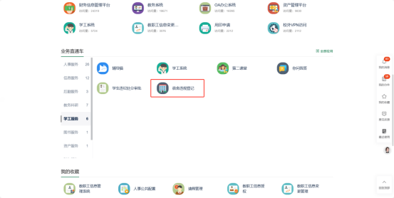 一、打开【网上办事大厅】----【学工服务】----【宿舍违规登记】