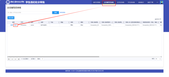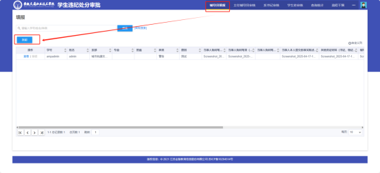 三、【主任辅导员审核】----点击【审核】按钮----上传材料----点击【启动】按钮