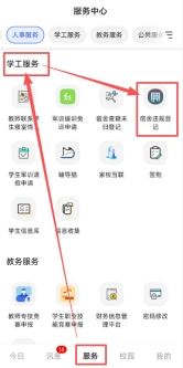 移动端:今日校园-服务-学工服务-宿舍违规登记