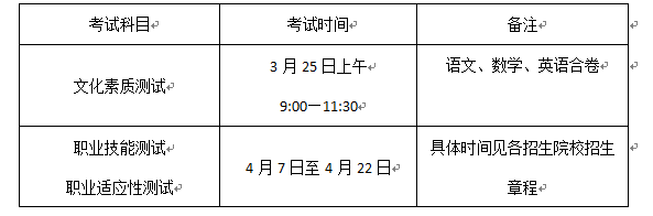 文化素质测试合格者,普通高中毕业考生参加招生院校的职业适应性测试,中职毕业考生参加招生院校的职业技能测试。测试的要求见各招生院校招生章程。