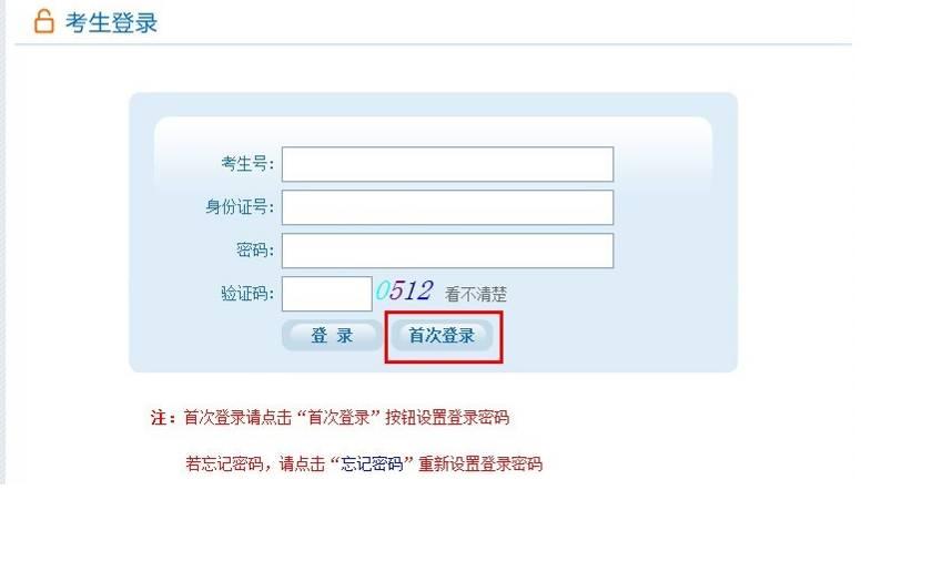 1. 使用IE浏览器登录gkbm.ahzsks.cn。如果是第一次登录系统,请点击“首次登录”按钮,跳转至设置登录密码页面。