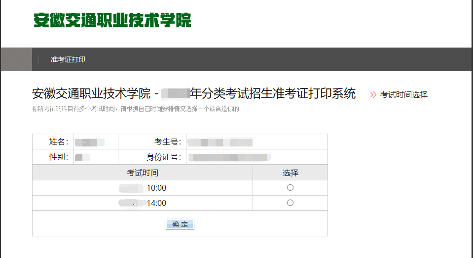 4.4月2日、3日考试的考生可选择上午场或下午场,点击确定后生成准考证。如下图所示: