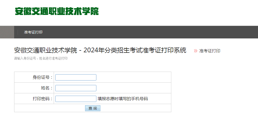 2.在页面中输入身份证号码及姓名,打印密码为填报志愿时填写的手机号码。如下图所示: