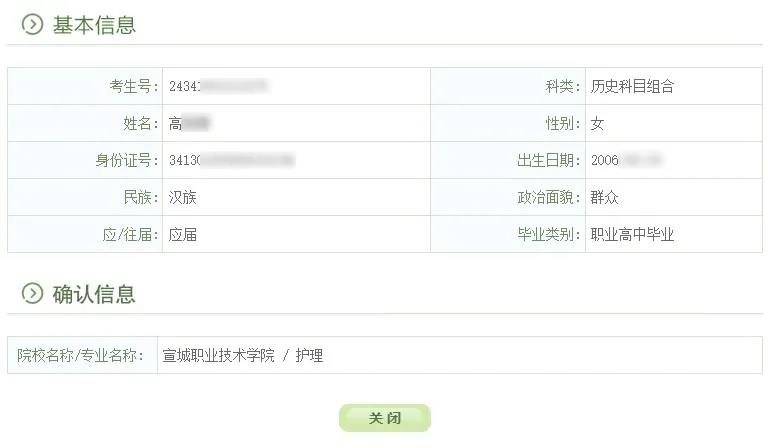 3. 退出后重新登录gkbm.ahzsks.cn,可以查询到自己确认的院校: