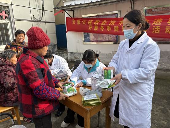 12月5日,学院赴帮扶村阜阳市颍东区汤圩村调研指导乡村振兴工作。总务处积极响应,组织医务人员随队为村民开展健康义诊活动。