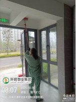 周转房:各楼栋地面、楼梯、护栏、门窗、电梯卫生全面清理