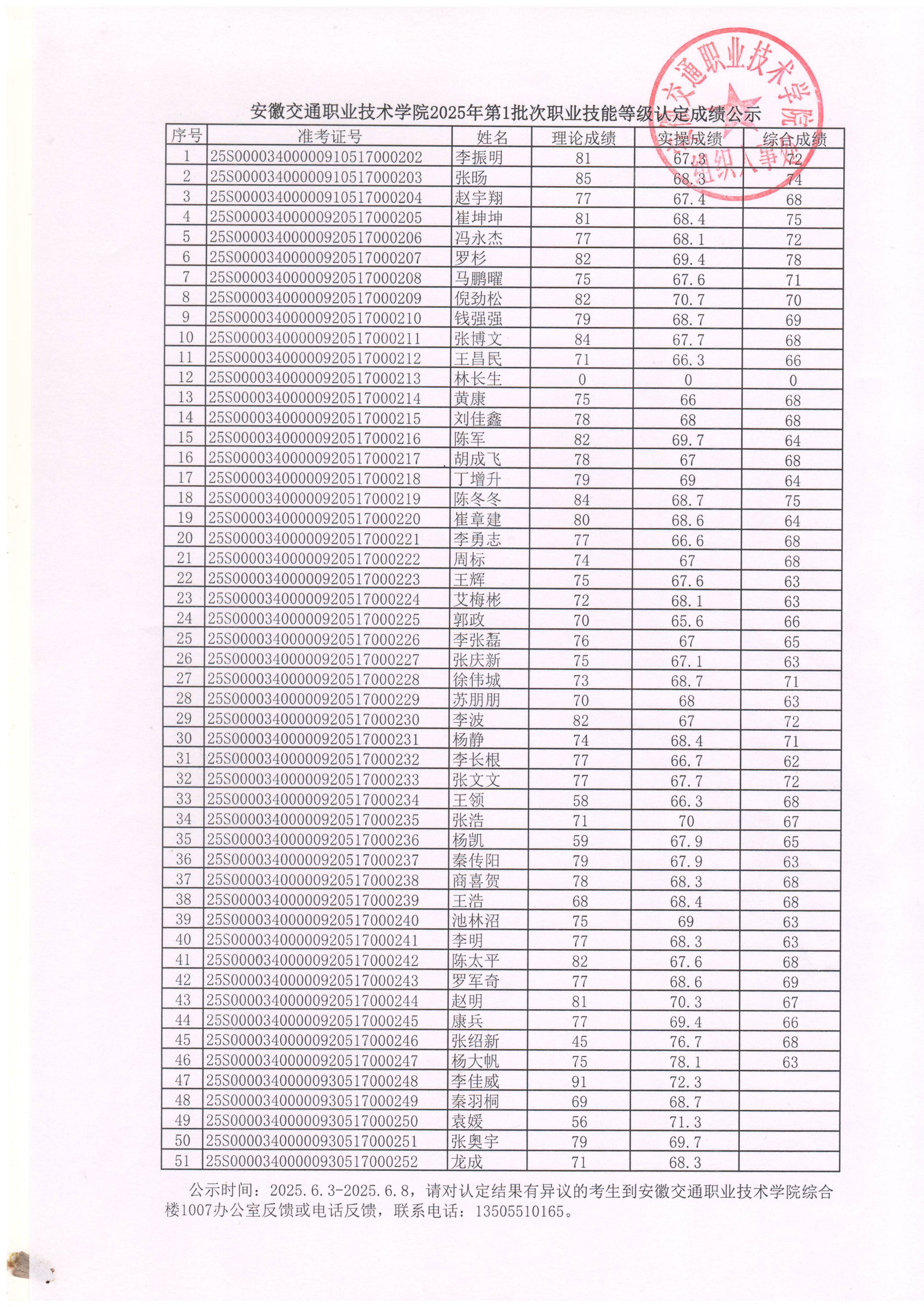 米兰milan官方网站2025年第1批次职业技能等级认定成绩公示