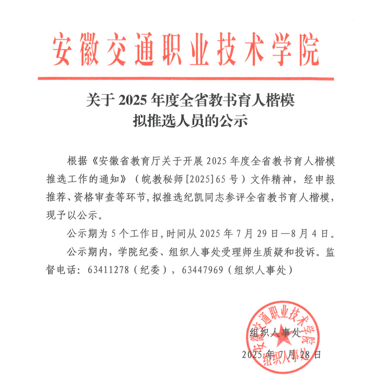 关于2025年度全省教书育人楷模拟推选人员的公示