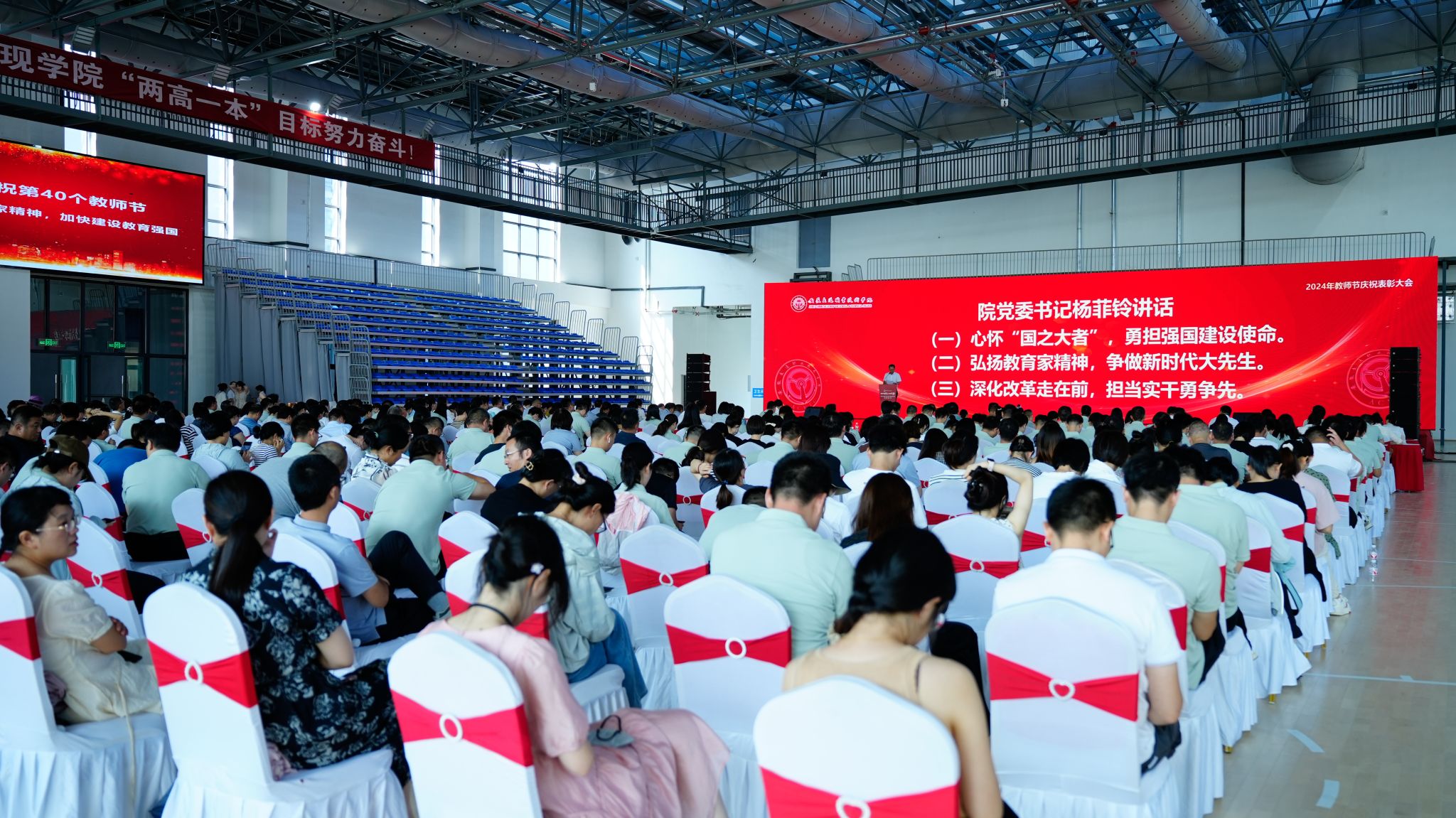 9月10日上午,学院在新桥校区体育馆召开大会,隆重庆祝第40个教师节,深入学习贯彻党的二十届三中全会精神和习近平总书记关于教师队伍建设的重要指示精神,表彰在教书育人各方面工作中取得突出的优秀个人和先进集体。院党委书记杨菲铃出席会议并讲话。党委副书记、院长孙晓雷主持会议。