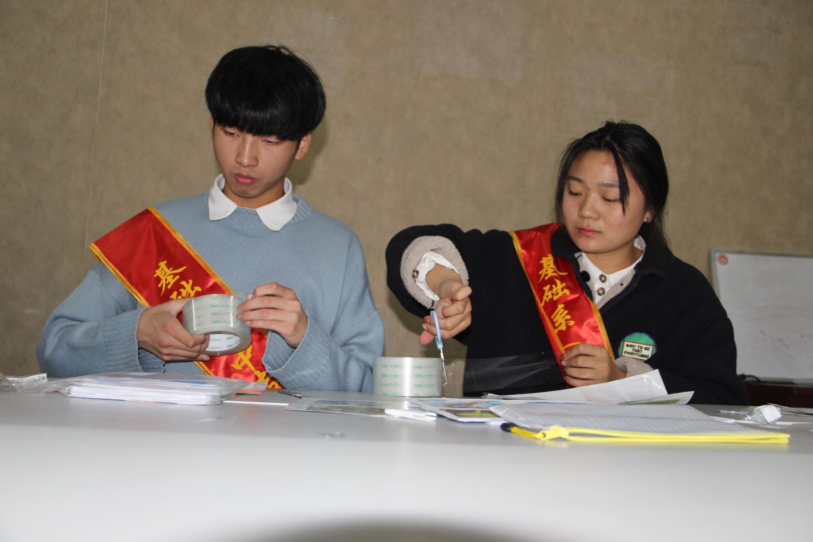 在简单的培训之后,八名志愿者帮助老师制作教辅用具。据王艳介绍,上课的教具很多都需要老师手工完成,给原本紧张的教师人手加重了负担,志愿者们的到来大大缓解了人手不足的情况。