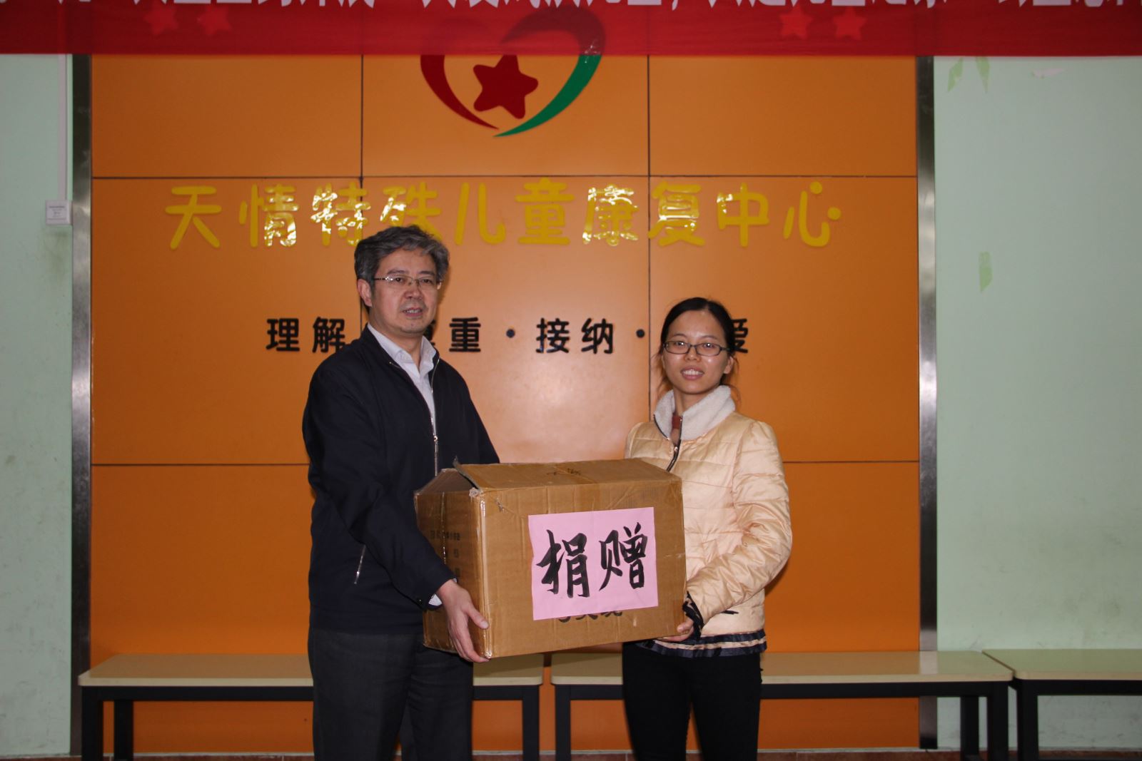了解到孩子们的康复过程和康复成效后,邵登泰对康复中心老师在工作中付出的爱心和耐心表示了由衷的敬佩,对孩子们表达了衷心的祝福,并表示基础系将长期将志愿活动进行下去,愿意根据孩子们的需要做力所能及的事。随后,邵登泰代表基础系向康复中心捐赠特殊儿童康复训练器械和教学用具。