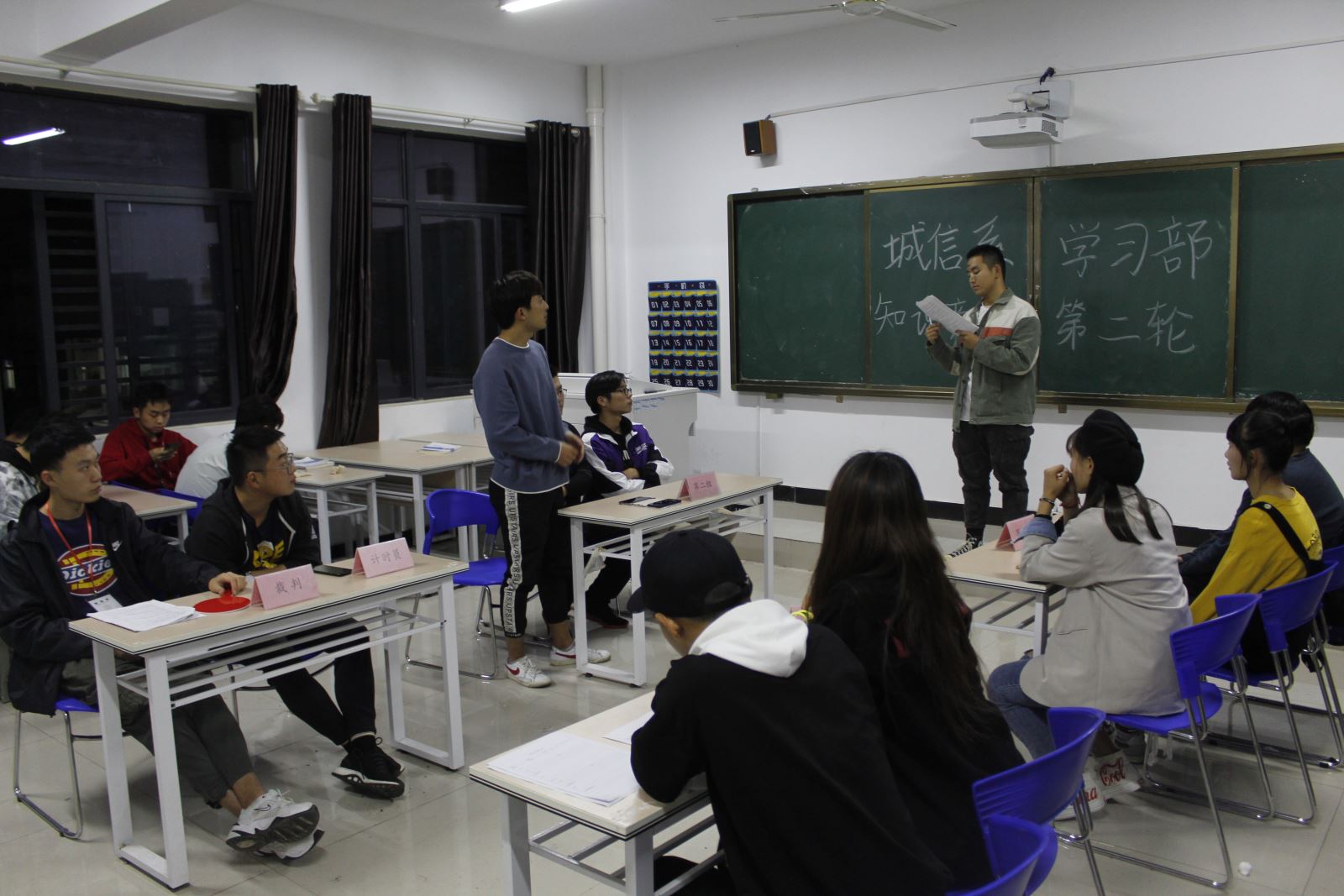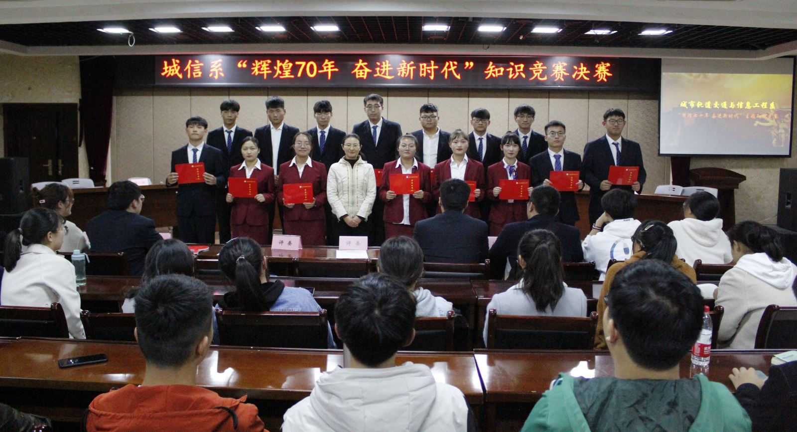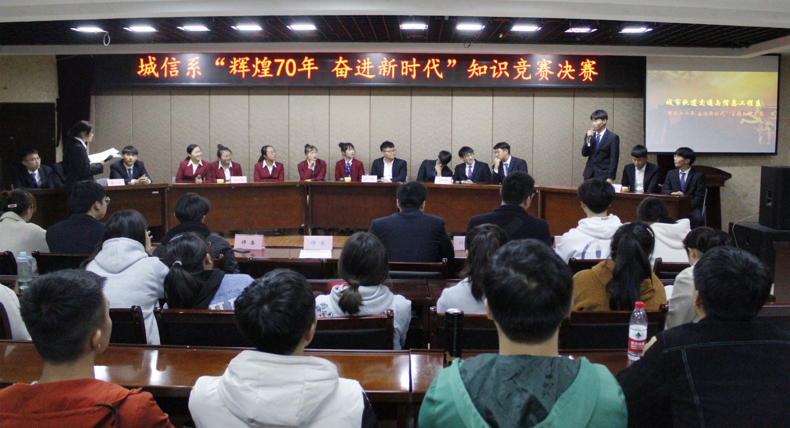此次知识竞赛由系学生会学习部承办,于10月23日开始进班宣传,涉及新中国成立70年以来政治、经济、历史、文化等各方面,特别加入了交通运输业近年来取得的巨大成就等内容。共计45支队伍报名初赛。