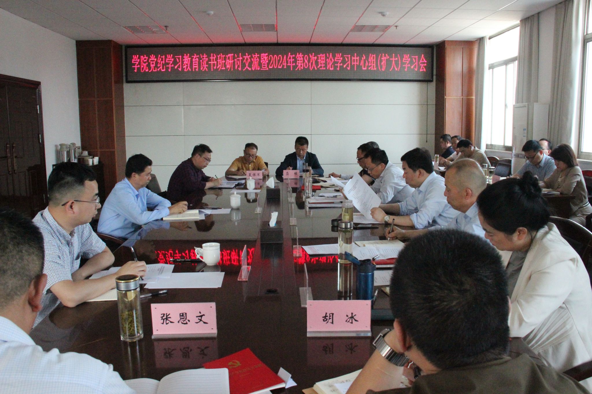 5月13日下午,院党委书记杨菲铃主持召开党纪学习教育读书班研讨交流暨2024年第8次理论学习中心组(扩大)学习会,会议重温了中央八项规定及实施细则精神、省委贯彻落实中央八项规定精神实施意见和安徽省《省内公务活动禁止饮酒规定》等制度规定。学院党委班子成员围绕“严明政治纪律筑牢政治忠诚”开展研讨交流,其他参学人员进行“随机式、互动式”交流发言。厅直纪委书记王玉虎与厅党纪学习教育专班工作人员旁听指导。院党委副书记、院长孙晓雷及在家院领导、各系部党政主要负责人参加会议。
