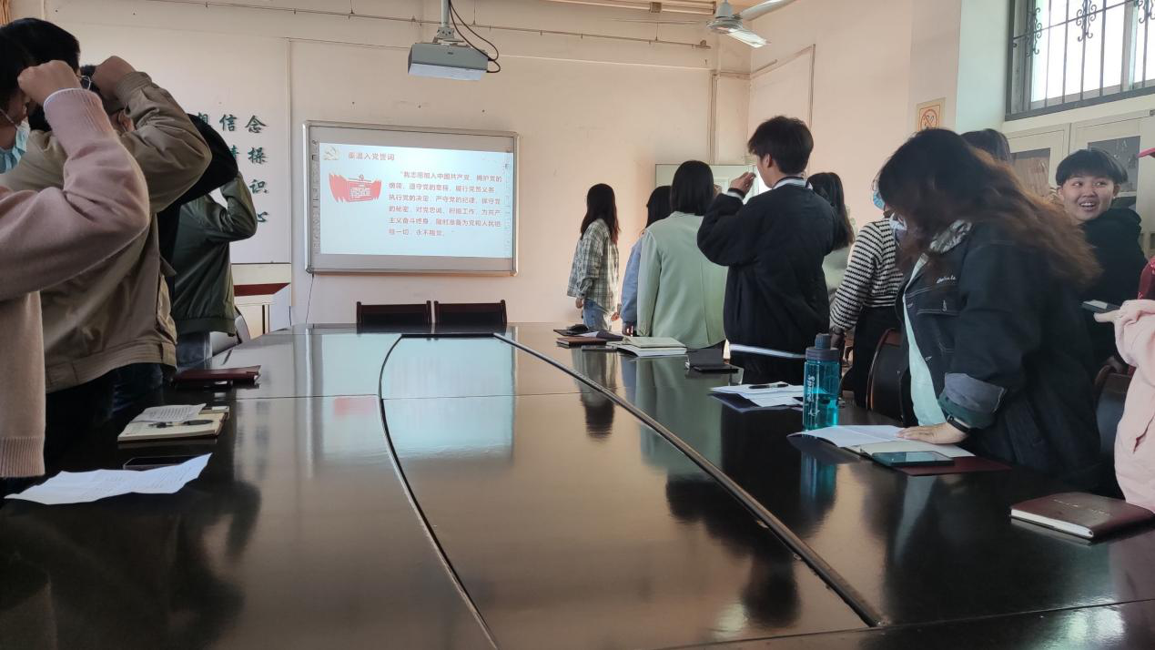 12月9日,3003新葡的京集团在党员活动室通过线上和线下相结合的方式举行新党员入党宣誓仪式,学院党委副书记罗霄、全体新发展党员参加宣誓仪式。