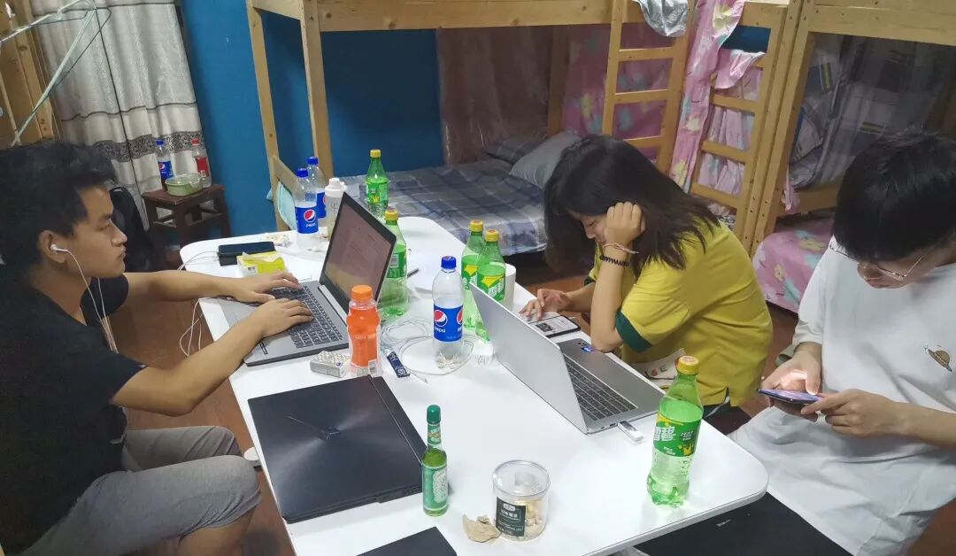 图为团队成正在整理当天的调查资料