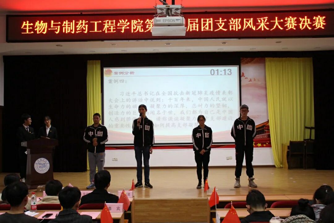 经过初赛及复赛的激烈角逐,共有8个支部晋级决赛。在主持人介绍完评委、到场嘉宾及决赛规则后,大屏幕随机选出两两对决的支部以及出场顺序。各支部通过PPT讲解和视频播放展示出其支部风采,随后评委针对其PPT和视频对其进行提问,主讲人现场回答。最后由各评委对其进行打分,分高者获胜并进入下一轮比拼。在此环节中各个团支部展现出各自的风采,以社会实践活动为引导来帮助同学们更深入学习党的思想。同时以学习为重点,一些团支部还专门成立学习小组来营造学习氛围,帮助同学们学习。生工2002的团支部更是以坚持,奉献精神,团结共进为支点建立团的思想。各个团支部的logo各展风采,提问环节既是老师对大家临场反应的考验,也从另一方面为同学们的学习、支部建设等提出了指导。