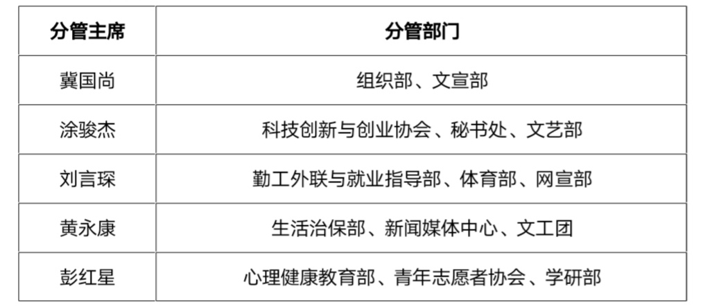 学生会主席团干部:(以姓氏笔画为序)