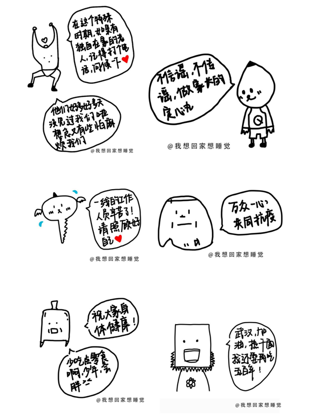 由新葡的京生物专业学生党支部学生张恬静创作的漫画作品围绕“致敬医护人员”和“疫情防护”两个主题,通过“武汉加油,热干面我还要再吃五百年”、“一线的医护人员辛苦了”、“万众一心,共同抗疫”等朴实感人的文字点睛,致敬城市英雄。同时,通过该种形式普及防疫常识,如锻炼身体少TIMI,出门记得戴口罩等。