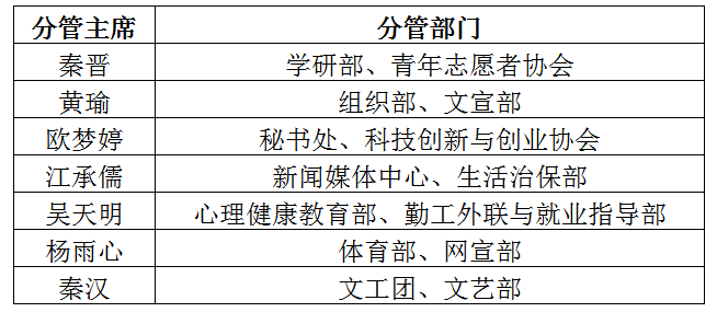 根据生物与制药工程学院分团委学生会干部管理的有关规定,经过公开招聘、个人申请、资格审核、面试考核和综合考察等程序,学院分团委学生会换届执委会研究决定,拟任命以下学生为生物与制药工程学院2019—2020学年分团委、学生会主席团成员,具体职位和人员安排如下: