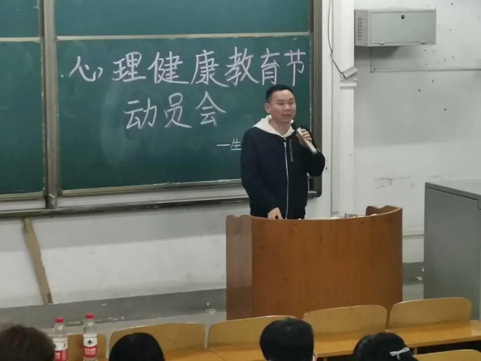 之后龙老师详细讲解并强调了心理健康教育节的具体活动,如:心理情景剧、心理委员心理户外素质拓展、“不忘初心·健康同行”主题班会大赛等,并且倡导大家多关注心理健康方面的知识,让各班班长及心委多多关注班上同学的心理状况。随后高老师发表讲话,提倡大家积极参与此次活动,并对于日后心委的工作提出建议,如:在班群中转发心理知识相关的文章。