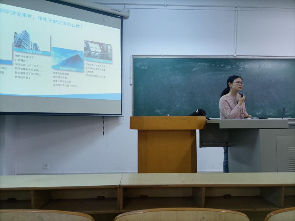 为进一步加强学生管理队伍建设,提高管理工作水平,5月18晚上,生科学院在科教楼204举办“校园突发事件防范与处理”班团干部培训暨学生干部例会,会议由2020级辅导员黄俊华主讲,2020级全体班团干部参加了培训。