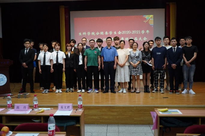 6月2日晚生科学院分团委学生会在科学报告厅召开第二次例会暨主席团换届大会。学院党委书记易文君,副书记陈丹,分团委书记高坤,19级辅导员龙俊伟,17级辅导员张婷老师及分团委学生会全体同学参加。