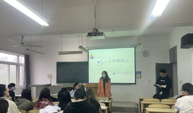 4月7日下午四点,生科学院生物技术1802班在辅导员邹威老师和班主任田宇老师的主持下,召开了新学期的班会。班会内容主要是探讨同学们大三下学期及大四学年的学习规划与未来发展。