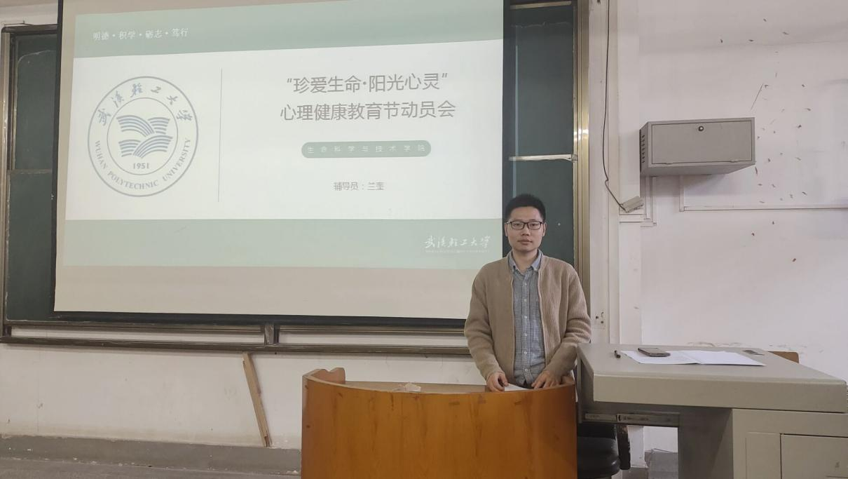 2022年3月30日中午十二点四十分,生科学院在医护楼二楼电教室召开了心理健康教育节动员会,参会人员有:生科学院心理辅导员兰奎老师、心理健康教育部干部郑珊珊、全院班长和心理委员以及生科学院分团委学生会心理健康教育部成员。
